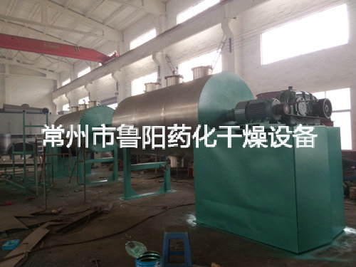 干燥設(shè)備,濕物料經(jīng)傳導(dǎo)蒸發(fā),帶有刮板攪拌器不斷清除熱面上的物料,并在容器內(nèi)推移形成循環(huán)流,水份蒸發(fā)后由真空泵抽出。